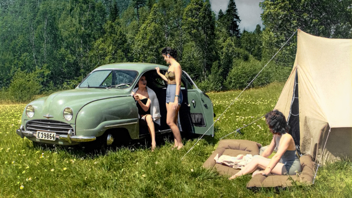 Всего 70 лет тому назад помыть машину прямо на пляже в Серебряном Бору считалось делом совершенно обычным. Сегодня за такое поведение можно получить штраф и осуждение, но тогда это воспринималось как норма.
