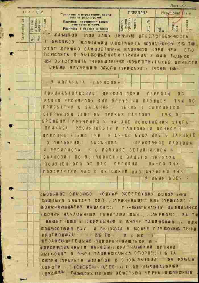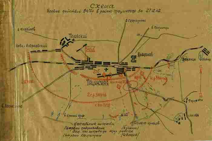8.00 24.12.42 в районе шахта №7 получен устный приказ командира 24 ТК - овладеть районом Ново-Андреевский и выйти с зап.стороны ст.Тацинская, атаковав пр-ка с тыла.