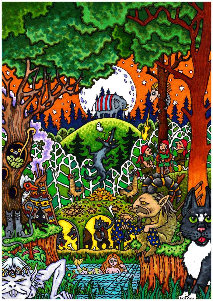 «Ура, ура, куснем муравья!» – напевает он, небрежно закапывая остатки своей трапезы. До него доносится чье-то сладкое пение. Оборотень настораживается – и, не раздумывая, устремляется на голос. Стрелой несется сквозь лес, но останавливается, замочив лапы в болотной жиже. Брезгливо их отряхивает. Пение становится отчетливее. Оно манит в болото. Идти или не идти? Приняв решение, оборотень начинает с тихим рычанием кататься по земле. Один кувырок, второй – и он встает в человеческий рост. Зевает и, перешагивая с кочки на кочку, углубляется в болото. Ночные стрекозы бьются на лету о его щеки. Пение делается слаще, громче и настойчивее.