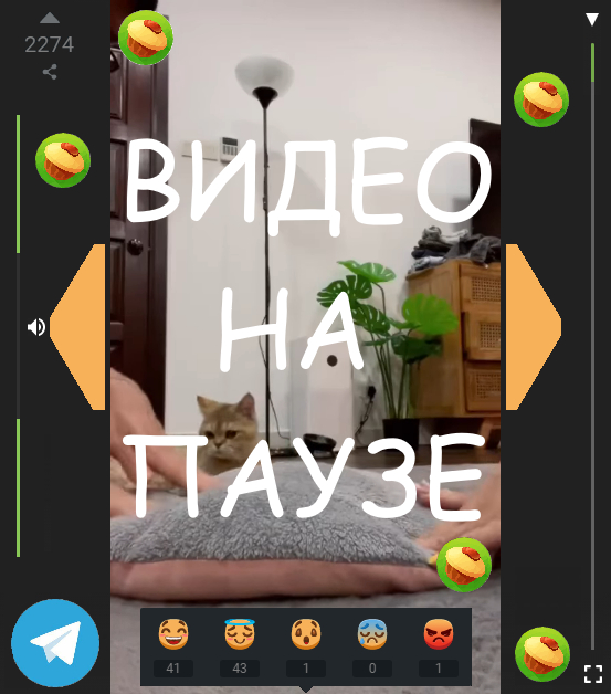 - Свайпы - по бокам. Ну какой современный сайт отказывается от возможности перехода на другие видео? При нажатии на вот эти красивые (цвета печеньки, кстати!) кнопки можно перейти на другой пост с другим видео! Альтернатива - промотать экран (на пк - мышью, на смартфонах - классическим образом). Всё это после просмотра рекламы, само собой. Не упускайте новый контент!