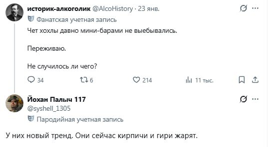 469 Ignatbrat Политика Новый тренд 1 день назад По мотивам этой новости Скриншот X (Twitter) Украинцы Политика Кирпичи Троллинг Стеб 79 13 2 2 2 Ещё 0