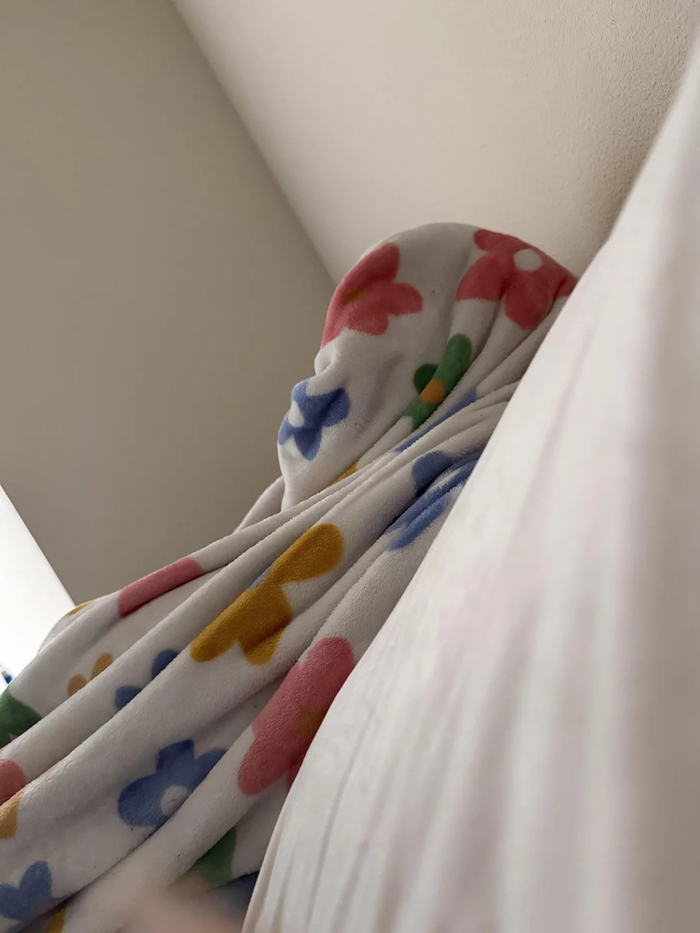 Как будто чертова мумия, полностью завернут в одеяло. Я постоянно боюсь, что он может задохнуться или что-то вроде того. Вот так он проводит ВСЮ ночь, иногда даже обматывая лицо в несколько слоёв. Он говорит, что ему так "хорошечно". Я не говорю уже о том, что страшно проснуться посреди ночи и увидеть такое. Я директор паники? Он говорит, что я драматизирую.