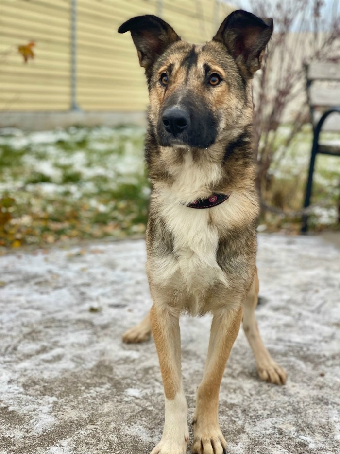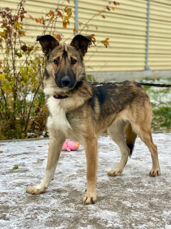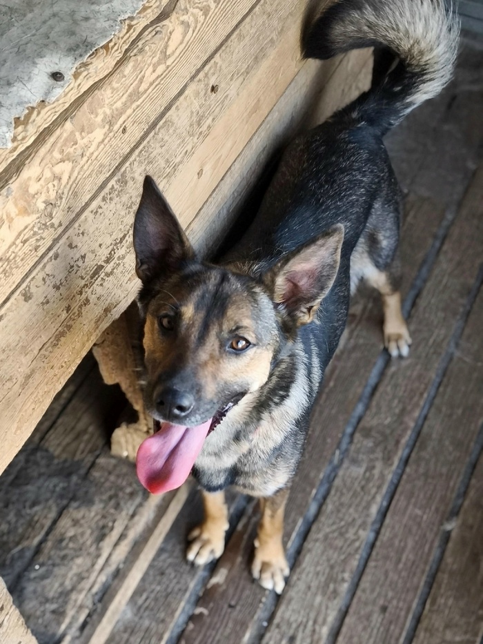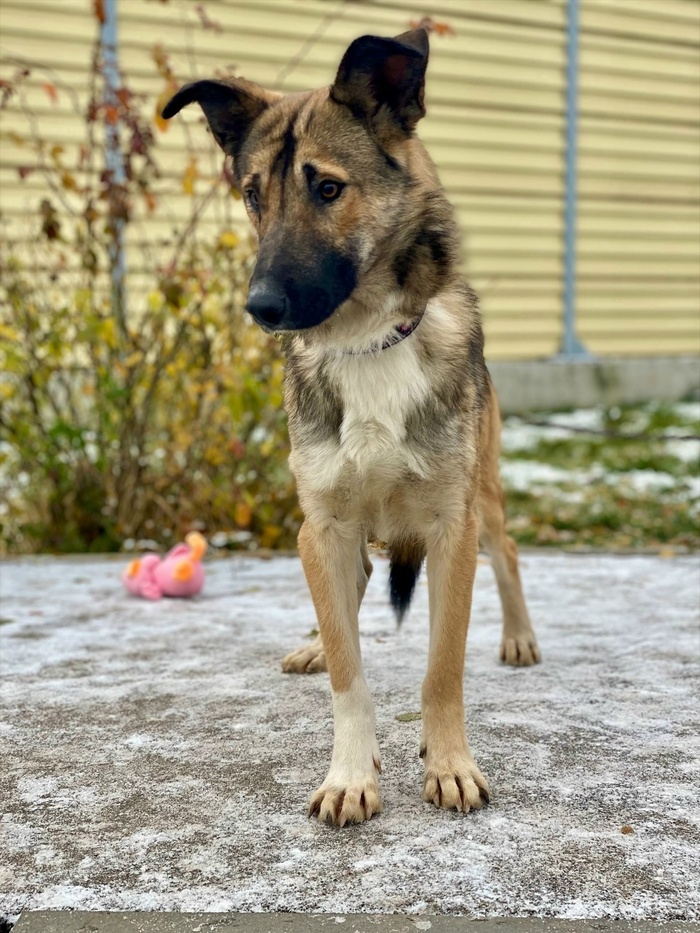 Это добрая, активная, игривая, красивая и ласковая рыжая сободевчушка с милыми глазенками и очень яркой рыжей расцветкой, а зимой имеет плотную теплую шерстку. Пуля живет в будочке вольера, имеет опыт быть на цепи.