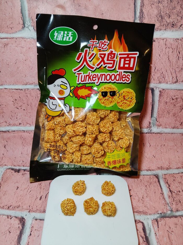 Сейчас должно свести олдскулы тем, кто в детстве ел сухой "бомжпакет" прямо из пачки, этот прикол прошёл мимо меня, я пару раз пробовала, но это действо меня не зацепило. Но я знаю, что многие любили такое лакомство в 90-е и 00-е, вот таким любителям эти чипсы должны понравиться. Это спрессованная лапша с куриными и говяжьими специями, при разжёвывании ты получаешь острый взрыв от ароматизаторов, если в первых чипсах острота приходит на послевкусии, то здесь она не заставляет себя ждать. В принципе - это просто сухая лапша со специями, не скажу что вкусно, скорее интересно и необычно.
