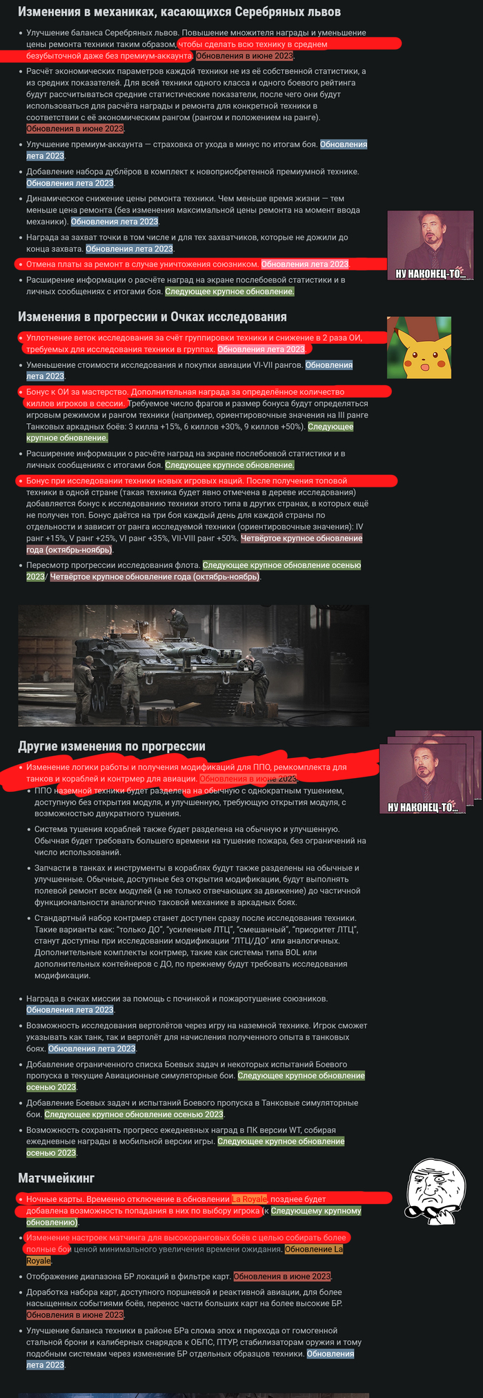 Помню в дни разгара скандала прислали мне опросник мол чем недоволен. И я там свое фе черкнул в основном чтобы разделили технику ПМВ/ВМВ и современную, а то они современную технику запрятали за стену гринда и если кому больше интересна современка, то выбрасывайте 3к рублей и 300 часов жизни или бесплатно 1000 часов. Но вообще без каких-то ожиданий опросник отправлял. А тут вижу правки и в этом направлении (особенно про уплотнение и группировку техники в дереве прокачки) и даже закралась мысль что мой отзыв кто-то прочитал.