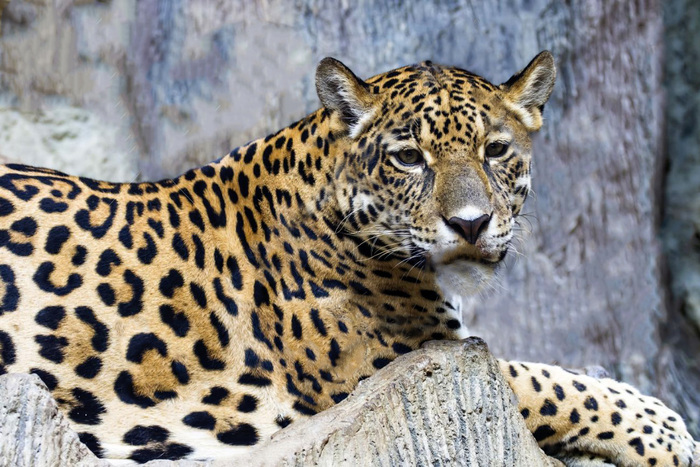 На фото ниже гибрид ягуара с леопардом. Если бы мне показали морду крупным планом, я бы не задумываясь сказал, что это ягуар, но рисунок на шкуре говорит, что это леопард – внутри колец нет точки.