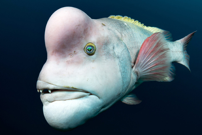 Кожа их светлеет, а на лбу появляется шишка. Несмотря на то, что эта шишка часто приводит губана в топ самых уродливых рыб мира, самки этого вида имеют противоположное мнение: чем шишка больше, тем кавалер привлекательнее.
