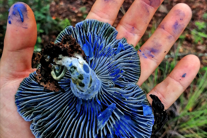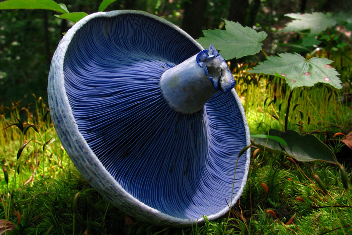 Кстати о синеве. Цвет грибного "молока" обусловлен веществом 7-изопропенил-4-метилазулен-1-ил метил стеаратом, что должно сказать вам многое, если у вас имеется докторская степень по органической химии.