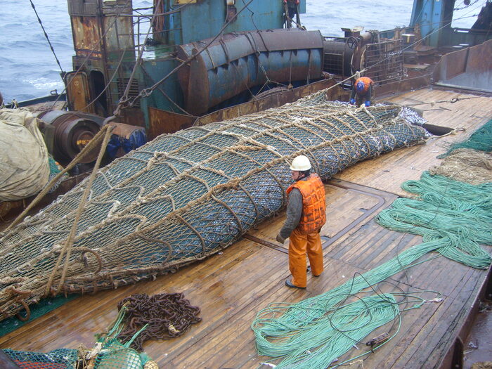 Когда рыба наловлена, очищена, упакована и загружена в трюма, в море подходит транспорт и мы швартуясь двумя судами посреди океяна выгружает им рыбу, а сами принимаем провизию и ГСМ(топливо). Можно ловить бесконечно, не заходя в порт.