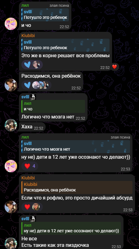 И это даже не воспринимается ими как что-то плохое! Когда толпа двачеров травила какую-нибудь несчастную бабку или орущего в трубку деда, то они прекрасно понимали, что делают злую и жестокую херню, ведь они злое и жестокое лицо анонимного Интернета. А тут вполне взрослые, хотя и инфантильные тетеньки, желают друг другу всего хорошего и обсуждают, как бы еще посильнее наказать 12-летнего ребенка за то, что тот сделал неприятно их любимому болванчику. Потому что что?
