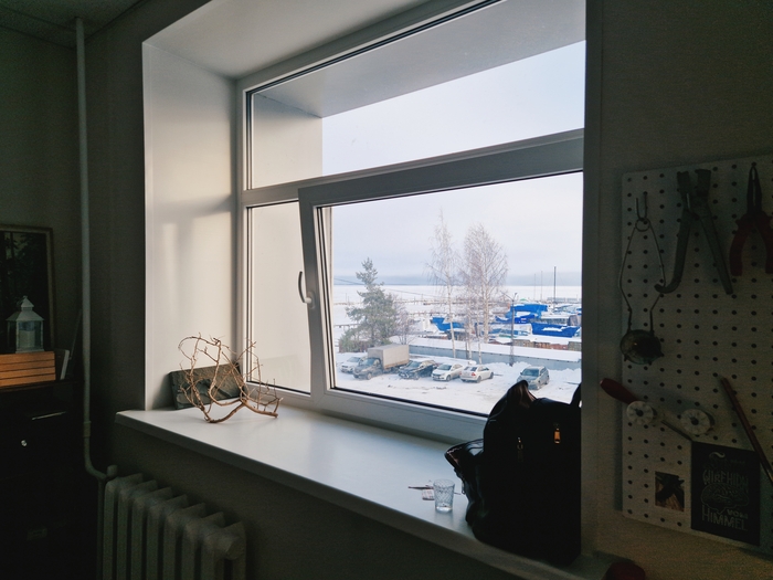 А ещё отсюда открывается вид на Онего и зимнюю стоянку яхт. И солнце светит как надо, на подоконнике фотографировать вещи - одно удовольствие.