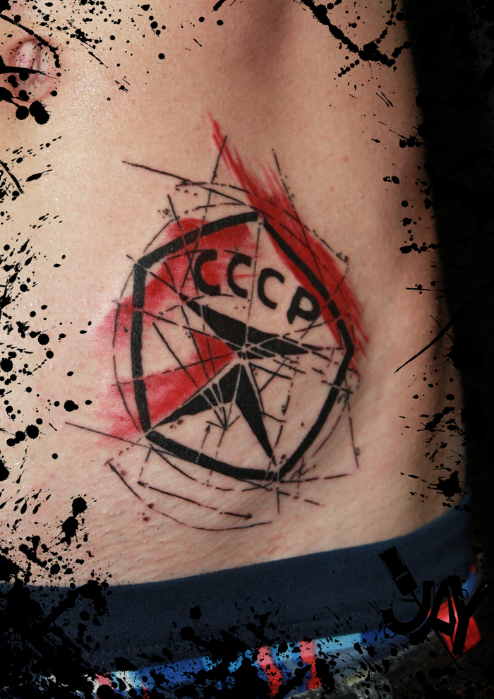 Морда рыжая, жопа серая, пузо белое, пятки чёрные.