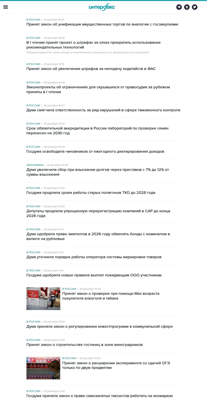 Законодательный принтер работал все 19 декабря без остановки. Можно зайти на тот же "Интерфакс" и посмотреть, как много документов было одобрено за один день. В большинстве случаев сразу в третьем чтении.