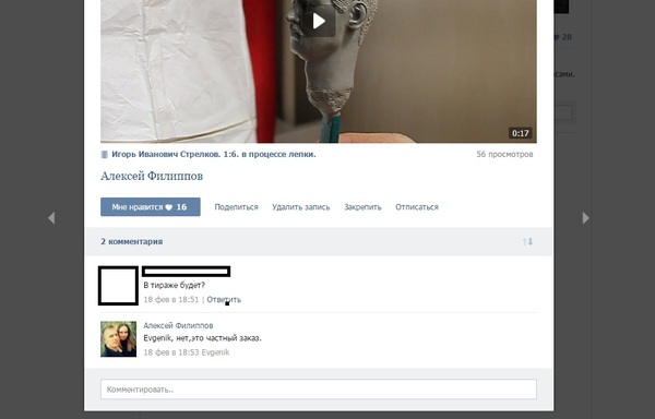 Я являюсь скульптором,который изготовил голову И.И. Стрелкова в масштабе 1:6 для частной коллекции. Ни о каком тираже не шло и речи(это видно в комментарии от 18.02.16.)