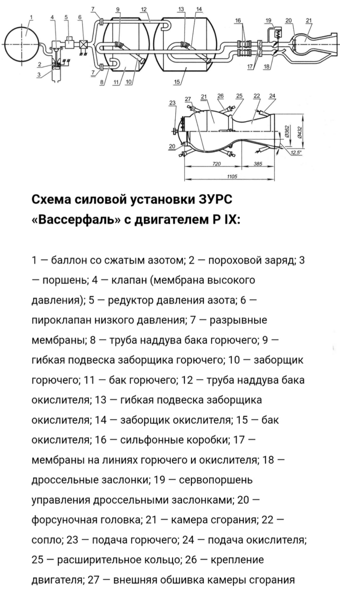 Ракета получила специально разработанный однокамерный двигатель на жидком топливе. В качестве горючего использовался т.н. визоль из группы топлив на виниловом основании. От использования жидкого кислорода отказались. Вместо него окислителем выбрали красную дымящуюся азотную кислоту. Такие компоненты могли в течение достаточного времени храниться в баках без риска утечки и повреждения конструкции. На борту имелось 450 кг топлива и 1500 кг окислителя.