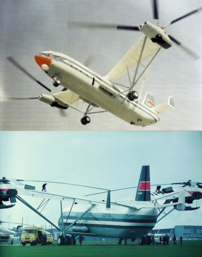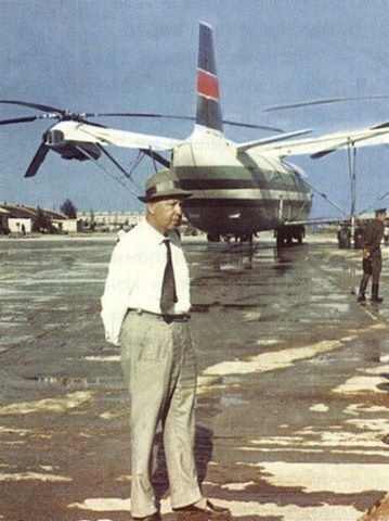 Такими были высказывания во французской и в мировой прессе после демонстрационного полета советского вертолета-гиганта В-12 на Международном авиационно-космическом салоне в Ле-Бурже под Парижем в июне 1971 года. У этого и поныне самого большого в мире винтокрылого летательного аппарата размах крыльев с двумя несущими винтами достигал 67 метров, диаметр винта - 35 метров, длина фюзеляжа - 37 метров, высота - 4,4 метра, диаметр колес шасси - 1,7 метра, максимальный вес - 105 тонн. Он поразил всех не только своими небывалыми размерами, но и новыми конструкторскими решениями, которые были оценены как самые передовые достижения авиационной науки и техники.