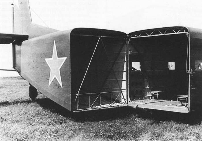 Фюзеляж полумонококовой конструкции имеет грузовую кабину, как у самолета Ан-22, размером 28.15 x 4.4 x 4.4м с задним грузовым люком с опускающимся трапом и боковыми створками и электролебедками и тельферами для загрузки различной техники. В кабине могло разместиться 196 солдат или 158 раненых на носилках. Кабина экипажа двухэтажная, в нижней кабине размещаются два летчика, бортинженер и бортэлектрик, в верхней — штурман и бортрадист.
