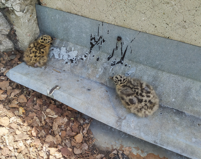 В полдень в палатке под палящим солнцем хуже чем в парнике. Попарившись час, я решил переставить палатку, мол вдруг чайка настолько осторожная, что не хочет садиться в присутствии постороннего объекта у гнезда. Жду снова, заныкавшись с другой стороны крыши. И не проходит и 5 минут, как на железный короб, напоминающий вентиляцию, садятся одна за другой две чайки. Одна чуть крупнее другой, на которой сразу видно красное польское кольцо, а другая просто на нее орет (или это они так общаются?) Парящий теплый воздух делает фотки ну очень мыльными, но все же видно и номер кольца и трекер на спине! Делавэрская чайка зафиксирована! А рядом наша сизая. После чайки снимаются и я быстро выпрыгиваю из палатки, чтобы посмотреть, что там скрывается за железным ящиком. А там, гнездо и отползшие от него гибридные птенчики. Я решаю еще немного понаблюдать и возвращаюсь в палатку. Снова парочка садится на это место и нервно смотрит в мою сторону. Задание выполнено и я сворачиваюсь и прошу охранников провести меня с крыши, а то там все слишком серьезно.