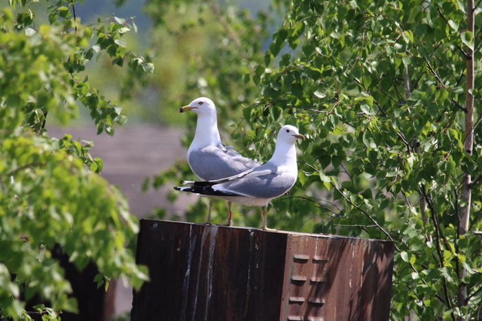 Знакомьтесь, делавэрская или кольцеклювая чайка (Larus delawarensis) - почти как наша сизая, только чуть крупнее, клюв массивнее, с крупным черным пятном, глаза светлые. Живет в Северной Америке, гнездится в США и Канаде, любит тусить на помойках, пляжах, бегать по парковкам за хлебушком и будить всех своим ором в 5 утра. Ну, в общем, реально как наша.