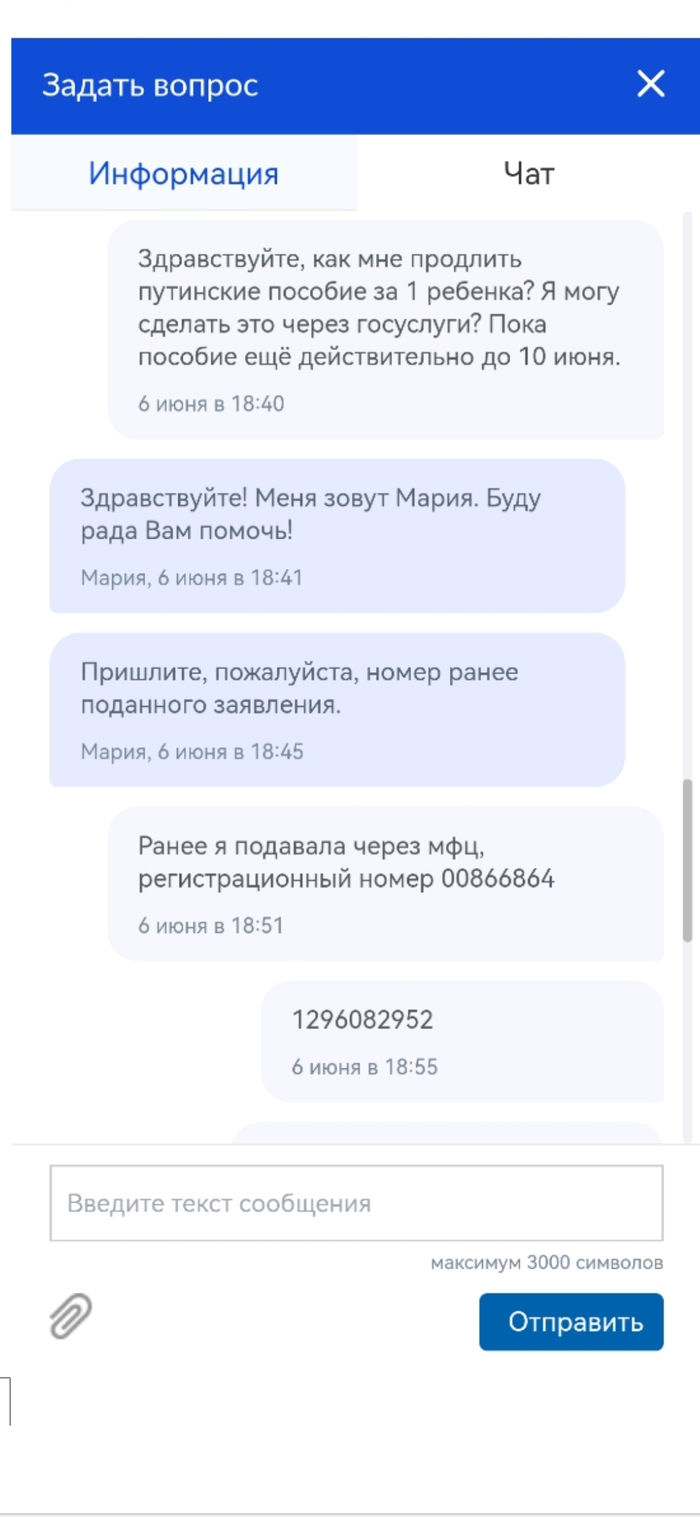На гос услугах, в чате, 06.06.2022 я задала оператору вопрос, в какую дату мне необходимо продлить заявление на выплату за первого ребёнка (путинские), ребёнок рожден 10.06.2021, и первая выплата производилась с 10.06.2021 по 10.06.2022 (сроком на год, каждый год продлять), оператор сказала, что первое заявление в прошлом году было подано 03.07.2021 и ранее этой даты повторное заявление подать нельзя.