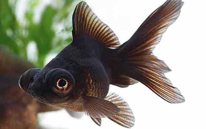 Внешность: Большие выпуклые глаза на стебельках – визитная карточка (развиваются к 3-6 мес.). Тело короткое, округлое. Хвост может быть раздвоенным (веерохвост) или вуалевым ("Бабочка"). Окрасы: черный ("Черный мавр"), красный, ситцевый, панда (черно-белый).