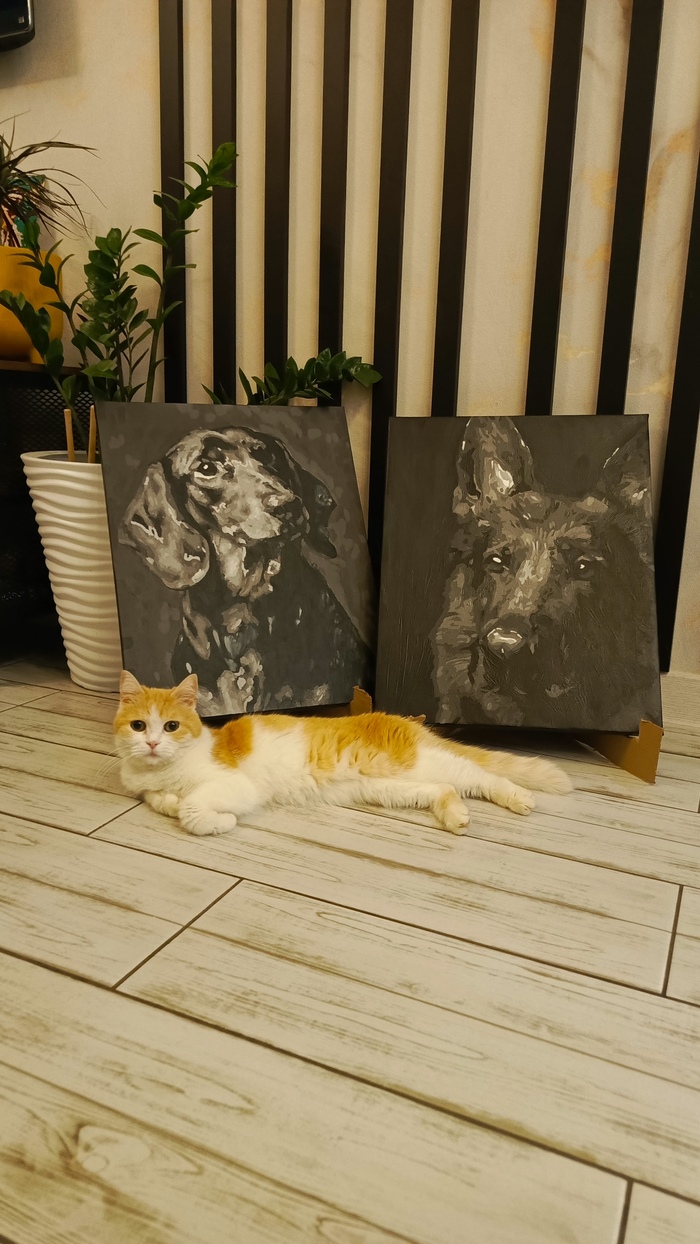 Пы сы: с кошкой это не по номерам картины, а использовала остатки краски😂 С собаками признаюсь - раскраска по номерам 😂 ну да и пофиг
