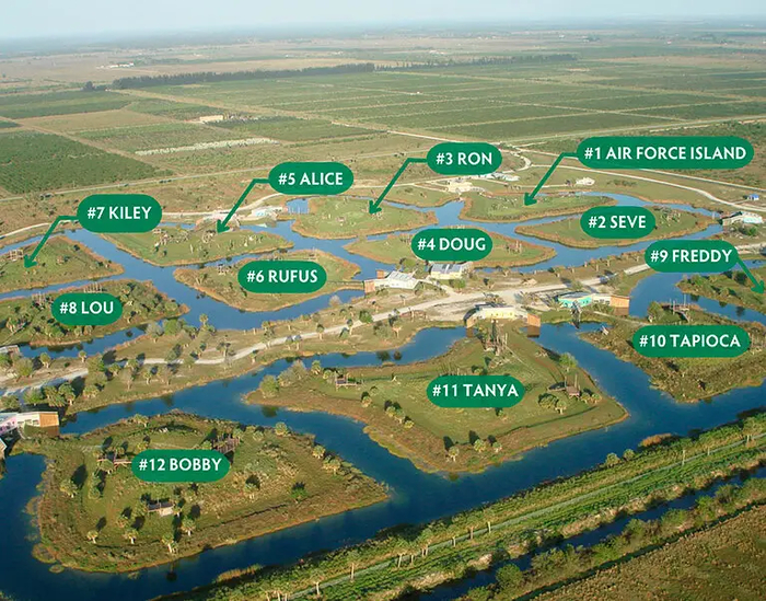 Шимпанзе (сейчас их 220) живут большими семейными группами на 12 отдельных островах площадью 3 акра (1,2 гектара). Большинство шимпанзе фонда десятилетиями жили по одиночке в маленьких клетках.