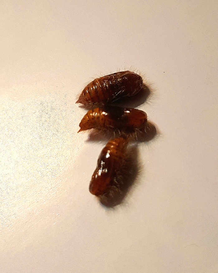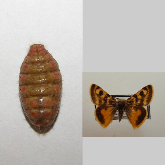 Это бескрылая самка мотылька Teia dubia из семейства волнянок, вынутая из кокона. Она так раздута от около двух сотен яиц, которые заполняют полость тела. Это фактически рекордсмен неподвижности: с таким "животом" и без крыльев она неспособна передвигаться. Жизнь проста и предназначена исключительно для продления рода. Самец сам найдёт её, оплодотворит, а чуть после тело бабочки послужит первым кормом вышедшим гусеницам.