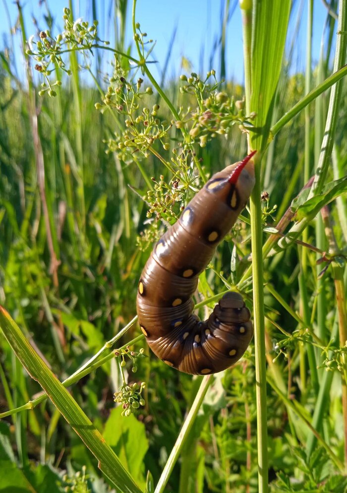 Уже после прогулки, дома, мы узнали, какая бабочка из неё получится - бражник подмаренниковый (фото бабочки из интернета):