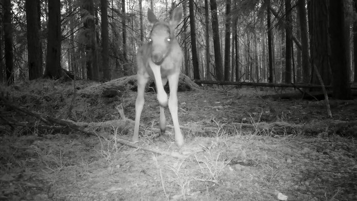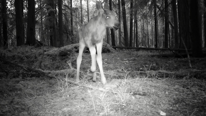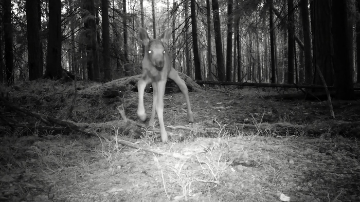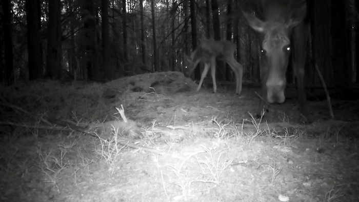 В мою видеоловушку попалась лосиха с лосенком