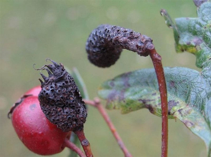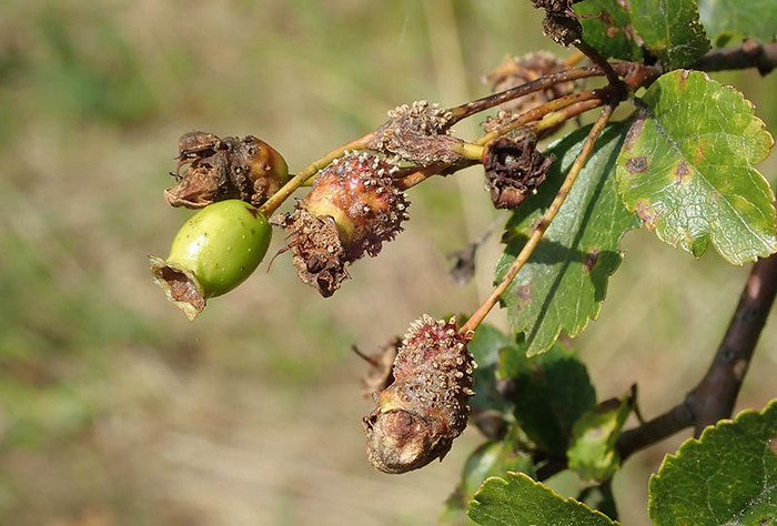 Промежуточными хозяевами являются различные виды рода боярышника, ирга, айва, яблоня, груша, мушмула германская, арония красная, рябина и другие.