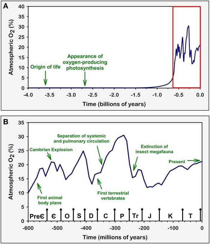Как связать амазонские леса и пермь-триасовое вымирание? Легко, грибы! Грибы также участвуют в поедании мёртвых растений, расходуя кислород. Так вот, Великое вымирание было настолько великим, что уровень кислорода тогда упал до 10-15%, а ранние триасовые отложения характеризуются огромным количеством остатков грибов (гиф и спор). Пермь-триасовые грибы жрали не только мертвечину, но и кислород (корреляция неравно причинно-следственной связи). На графике в районе 250 млн лет назад видно резкое падение уровня кислорода. Вероятно, частично в этом «вина» грибов.