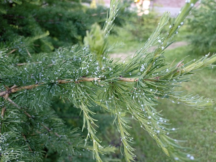 Вопрос от подписчика: Просьба идентифицировать существо. Появилось на нижних ярусах веток лиственницы, в больших количествах.
