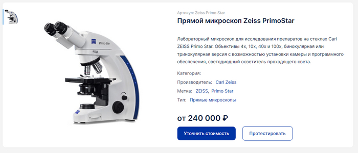 Кстати фирма Carl Zeiss существует до сих пор и по прежнему производит оптические приборы и микроскопы для различных задач. Стоимость бюджетных моделей начинается от ~200 тысяч рублей, а самые дорогие могут обойтись в несколько миллионов.