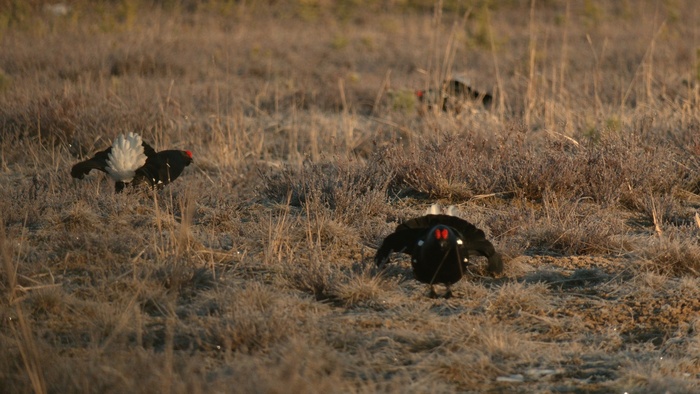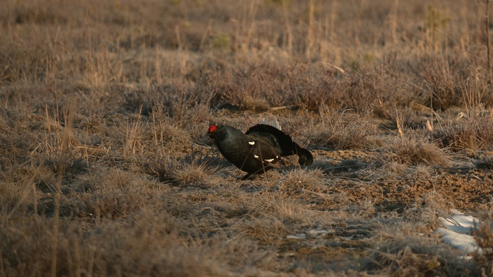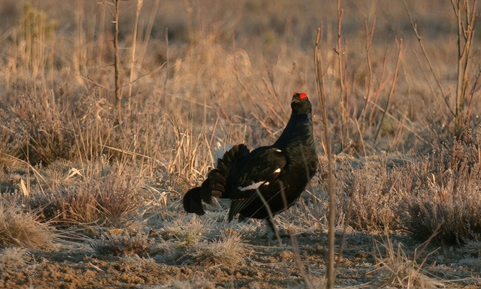 Токовище – это участок болота или, как здесь, поля, на котором птицы собираются каждую весну, чтобы побороться за право продолжить свой род. По утрам женихи исполняют свою знаменитую весеннюю песню – бормотание. Месяц назад самцы только начинали присматриваться к месту будущих брачных турниров. А теперь они уже выбрали свои индивидуальные участки, которые будут отстаивать в боях. Между самцами начинают вспыхивать драки. И внешне они преобразились, один только хвост в виде лиры чего стоит! Брови налились кровью и увеличились в размере в сотни раз. Учеными доказано, что чем больше размер бровей у тетерева, тем выше его шанс привлечь к себе невесту! Все женихи готовы к встрече тетёрок. Они появятся здесь со дня на день – и тогда наши красавцы начнут куда азартнее выяснять свои отношения. Буду и дальше следить за ходом событий на тетеревином току.