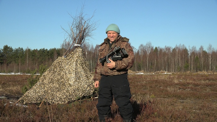 Для наблюдения за током, заранее построил специальный шалаш. Птицы очень осторожны - без специального укрытия с близкого расстояния снять их нереально.