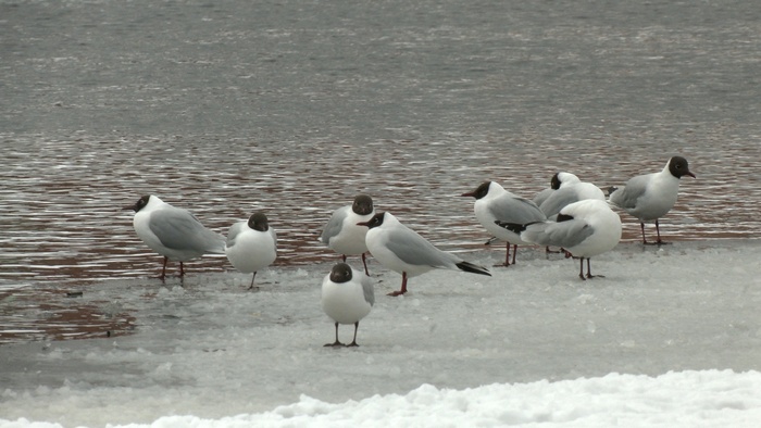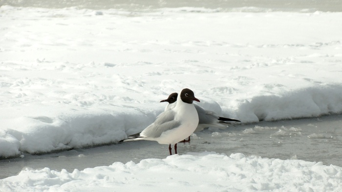 Знакомьтесь: чайки озерные. Сейчас, в брачном наряде, они хорошо выделяются среди других видов чаек своей тёмно-коричневой головой и белым затылком. Вокруг глаз у них тонкий белый ободок. Это одна из самых распространённых чаек в мире — её общая численность превышает 4 млн! Большинство птиц уже образовали крепкие пары. Самцы у чаек – преданные семьянины. Ну а кто из озерных чаек по дороге домой не успел найти пару, у того еще есть шанс встретить свою вторую половину в нашем прекрасном городе!