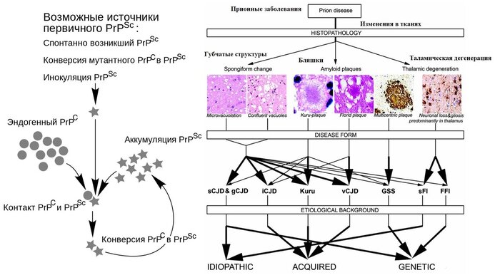 Пути заражения и изменения тканей в результате прионных заболеваний