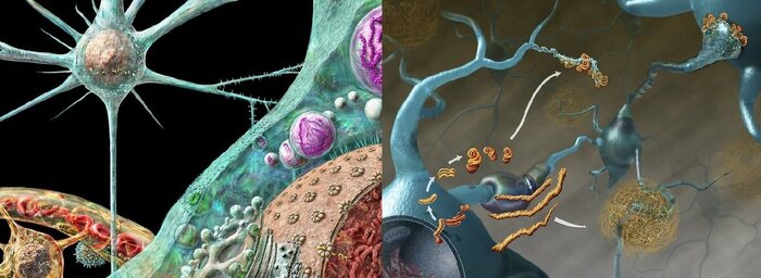 Прионные структуры внутри мозга (иллюстрации)