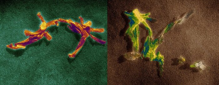 Структуры прионного белка. Просвечивающий электронный микроскоп. Увеличение х90 000 раз