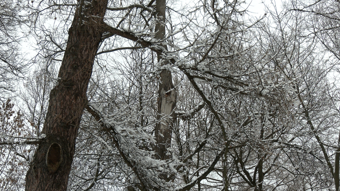 Это оседлые дятлы. При благоприятных условиях в одном месте они могут жить годами. В какой-то момент самец издал призывную брачную "песнь" - барабанную дробь - и парк сразу наполнился весенним настроением!