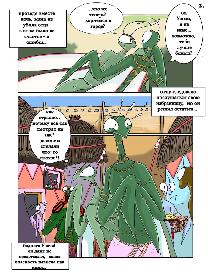 История про богомола. Чад. Глава 1. Знакомство с Тобо. Страницы 1-2