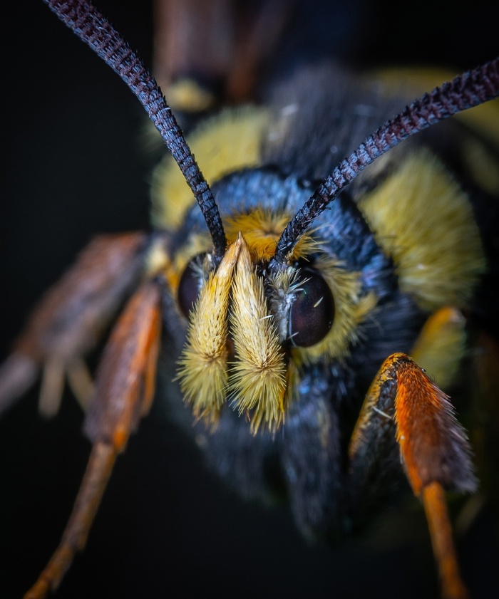 Это тополевая большая стеклянница (Sesia apiformis). Свое название она получила за совершенно прозрачные крылья – что в норме отнюдь не свойственно бабочкам! А тополевой она названа за то, что ее гусеницы, являясь злостными вредителями, повреждают кору и стволы, чаще всего, тополей, хотя не отказываются питаться и березой, ивой и липой. Каждая гусеница уничтожает древесину в течение трех лет, чтобы лишь на четвертый год превратиться в прекрасную бабочку, порхать несколько недель, отложить около тысячи яиц – и погибнуть. Самки откладывают одиночные яйца, выбрасывая их на землю. Этот редкий момент мне повезло снять на видео. Внешне бабочка очень похожа на шершня, хотя для человека она абсолютно не опасна, и бояться ее не стоит.
