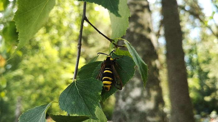 Во Всеволожском районе под Петербургом я встретил шершня, который оказался бабочкой с прозрачными крыльями.