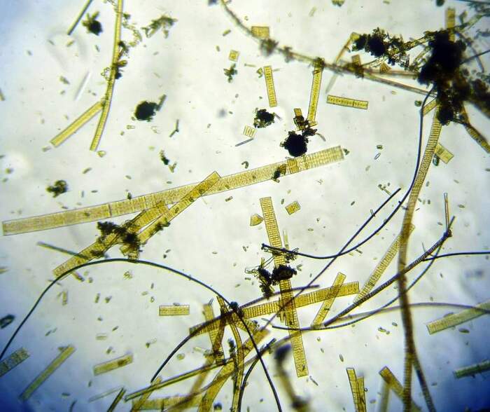 А диатомовые водоросли - одни из самых частых во всех пробах дикой воды. Коричневатый ил, налёт на растениях - это они. Вот несколько фотографий разных диатомовых: