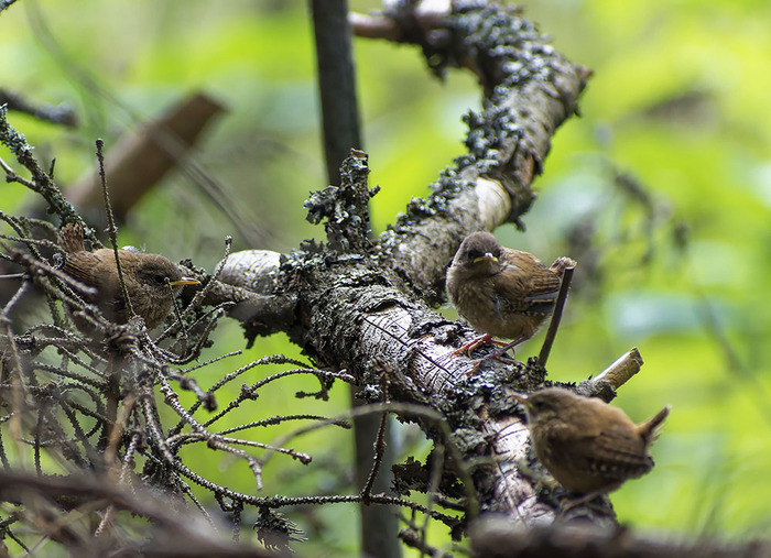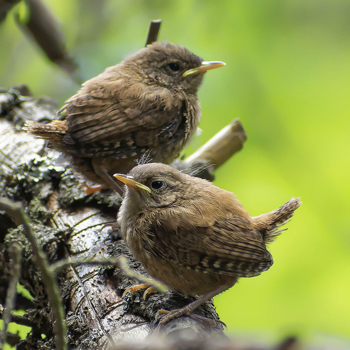 Два слётка. Они такие толстенькие по сравнению с родителями. Потому что ничего не делают, а только жрут.