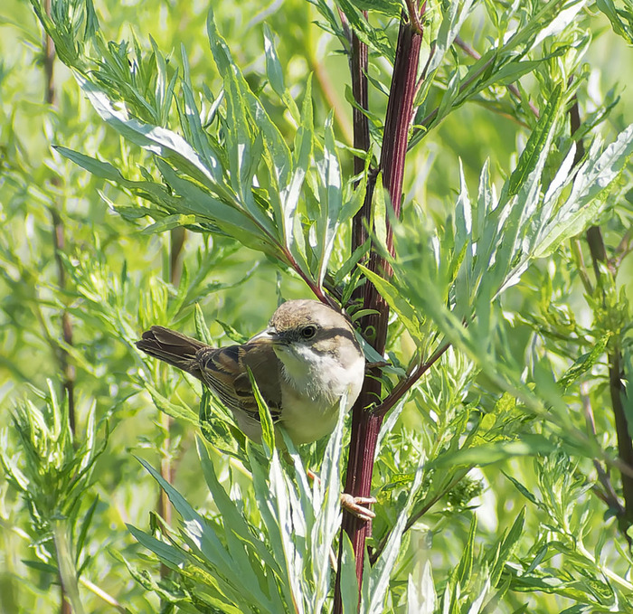 Рядом с варакушкой засела и серая славка. Причём в отличии от варакушки, славка любопытствовала активно и особо не пряталась.