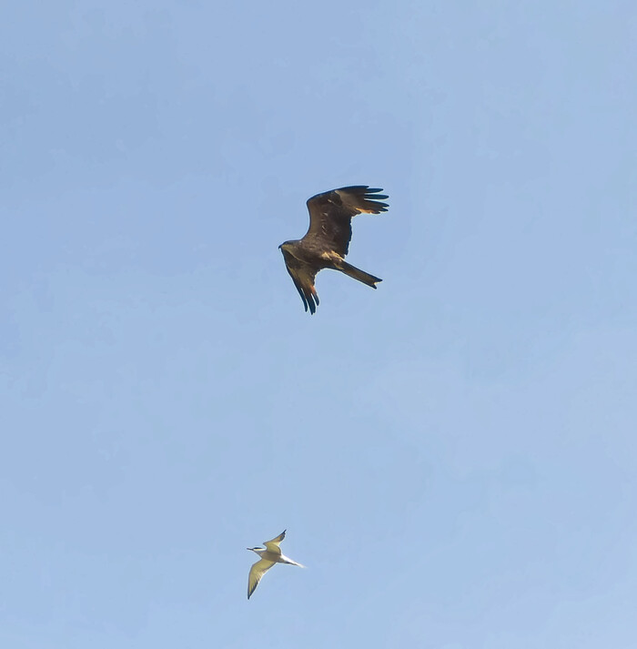 Дальше все чайки и крачки возопили и начали летать во все стороны. Так, подумал я, значит прилетел какой-то хычник. Хищником оказался чёрный коршун. Красная книга Московской области.Cтатус. 2-я категория. Немногочисленный, широко распространенный вид с сокращающейся численностью.