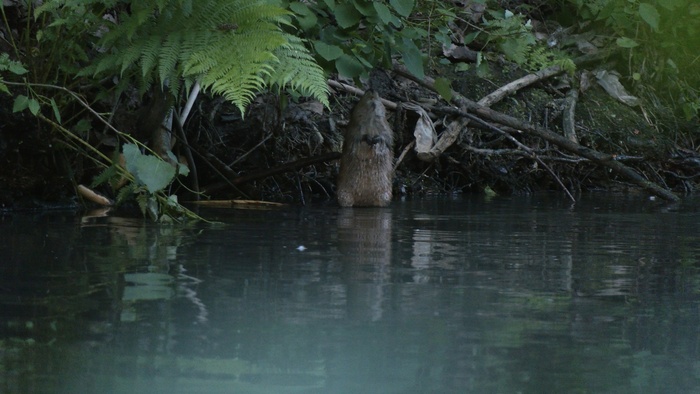 Ондатры нередко живут по соседству с бобрами, которые тоже роют себе норы в крутых берегах.