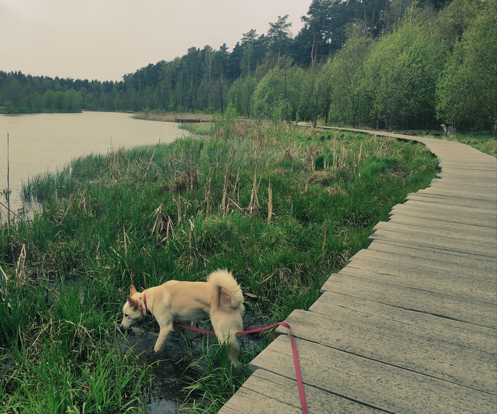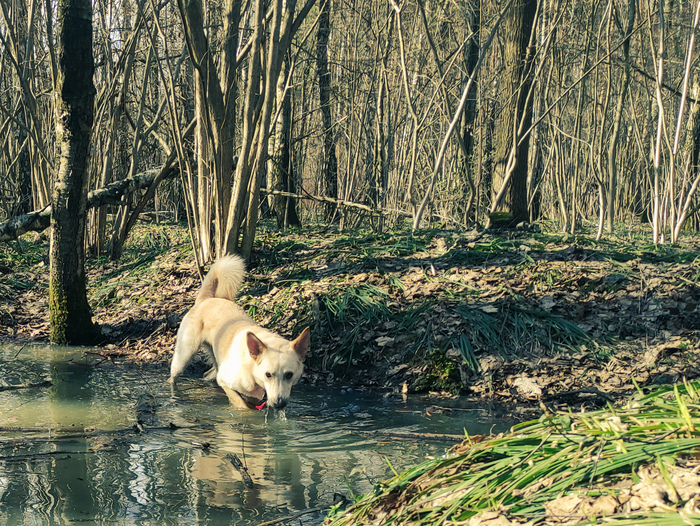 Привет, Пикабу! Сегодня хочу познакомить вас со спонсором моих лесных фотографий, с моим четвероногим другом — псом Степаном, который уверен, что каждая лужа в лесу создана специально для него.